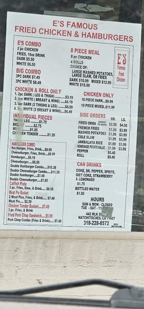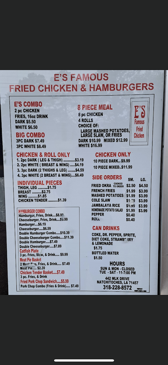 E's Famous Fried Chicken Menu